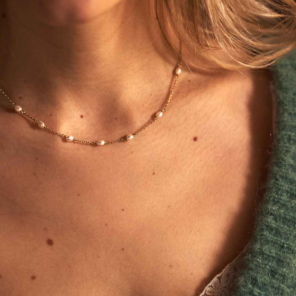 Girocollo in ottone degradè placcato oro oppure in ottone anticato con catena sottile e perle di acqua dolce. Simbolo di un’eleganza senza tempo, le perle sono uno dei gioielli più classici che ci siano, un must-have da custodire con gelosia. Le perle donano un look elegante anche all’outfit più semplice. Chiusura con micro targhetta e logo Pepelù.